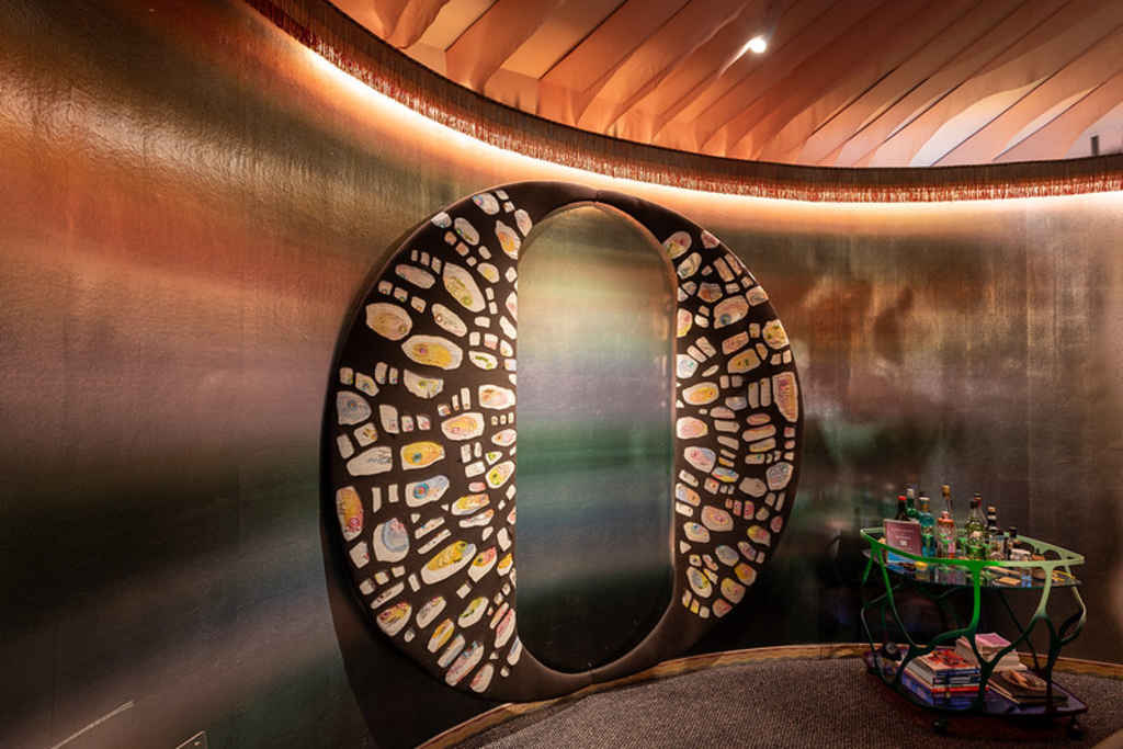 The 3am room was a collaboration of designers, craftspeople and suppliers including Altfield, Charles Burnand, ecoScent, George Smith, Illuminationworks, K-array, Lutron, Optelma, Pierre Frey, Tom Faulkner, The Royal School of Needlework, and 2B Heard. The sonic focus of this project was the integration of K-array's miniature Lyzard loudspeakers, which brought a sonic backdrop to the exhibit.