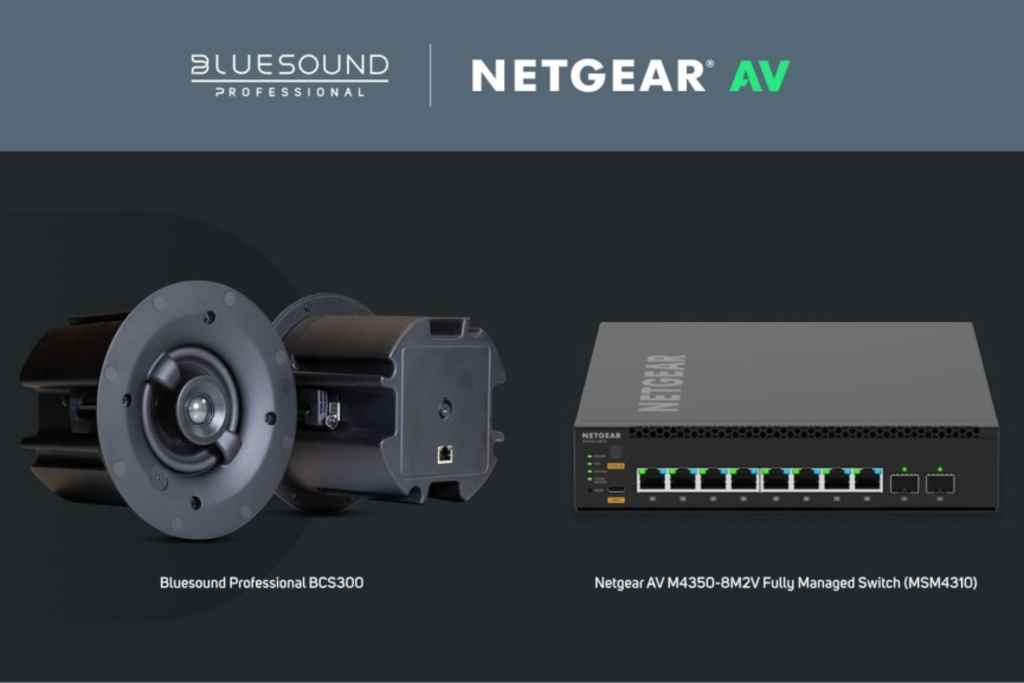 Bluesound Professional and Netgear AV are partnering to simplify the deployment of networked audio systems through preconfigured network profiles on Netgear switches.